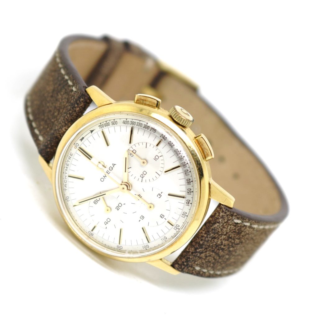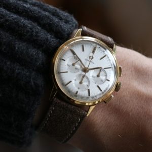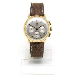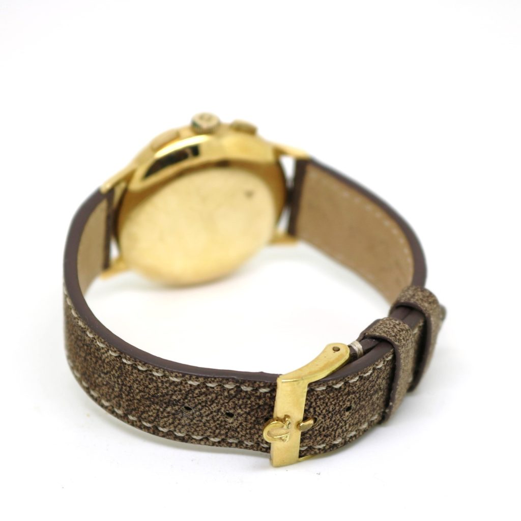 This handsome chronograph dates between 1960 and 1969 – an important decade that saw the emergence of history’s most simplistic and revolutionary chronograph designs. A harmony of simplicity and complexity, this wonderful gold chronograph offers exceptional value for money from an esteemed manufacture.