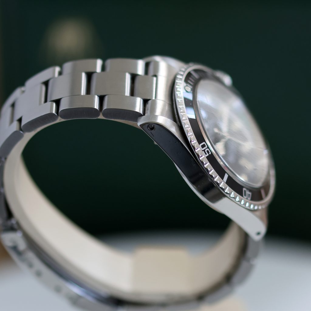 The watch retains its original serif bezel insert, an increasingly scarce detail with its distinctive fine typography, adding further depth and collectability.